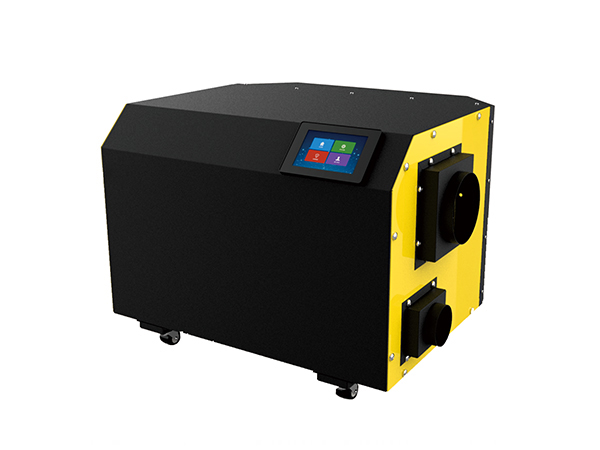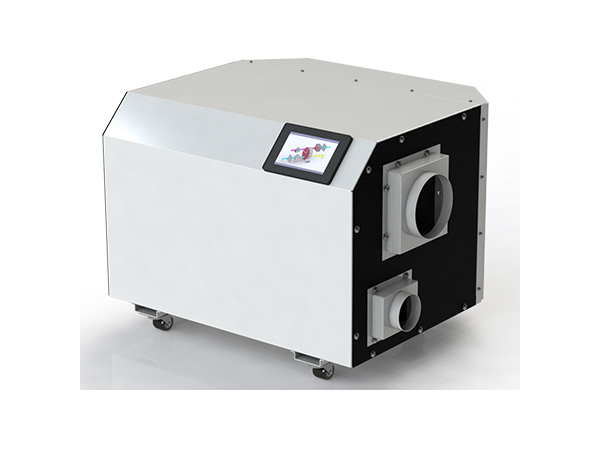 在再生过程中,再生空气经过加热后(120℃左右),进入转轮再生区扇面,在高温状态下,转轮中的水分子被脱附,散失到再生 空气中。再生空气由于在脱附过程中损失了热量,自身温度降低,变成了含湿量很大的湿空气 ,由再生风机排至室外。除湿和再生同时进行,待处理空气不断除湿,转轮不断再生,对空气进行连续除湿。